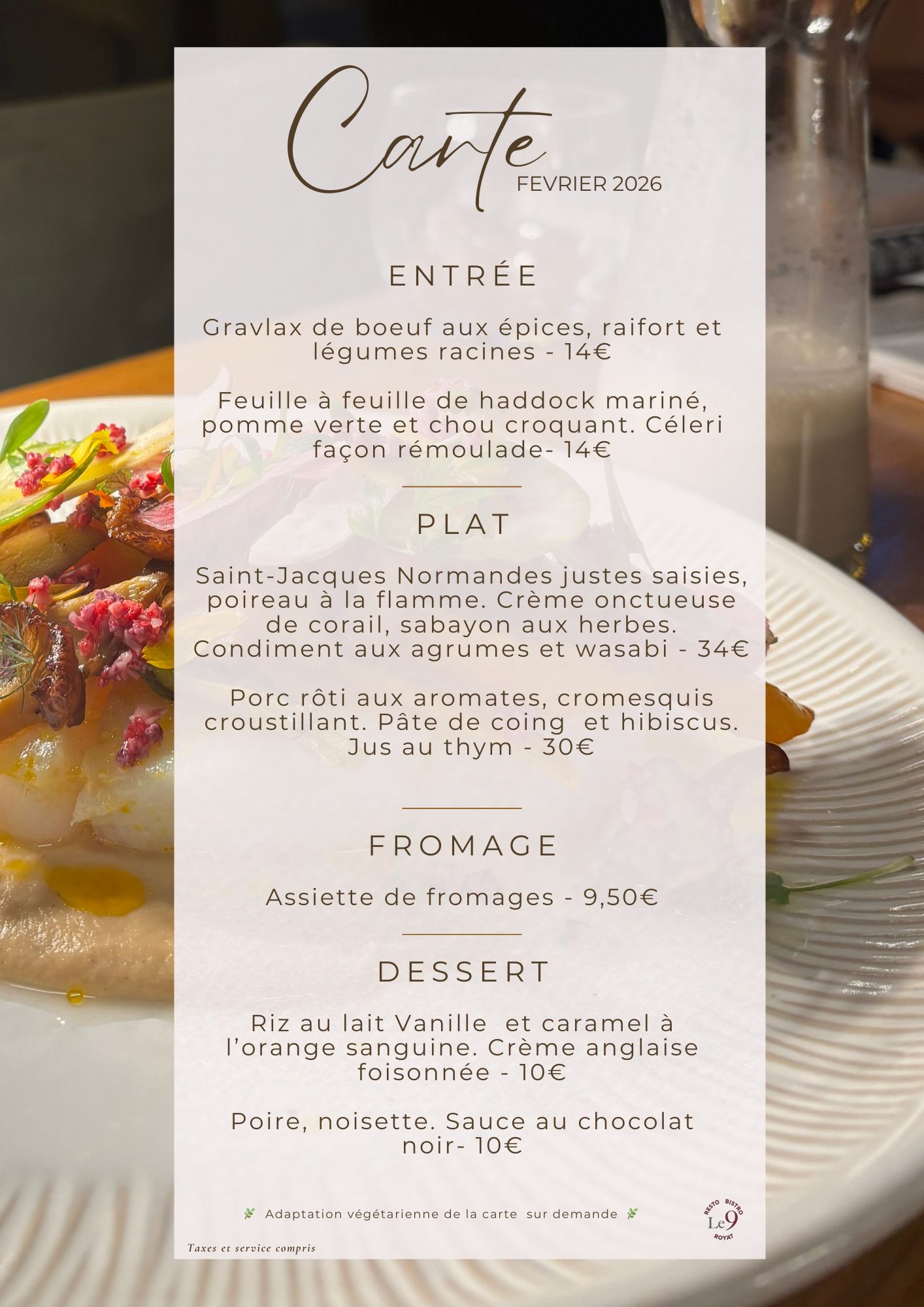 Du lundi au vendredi soir, carte de saison élaborée par notre Chef.